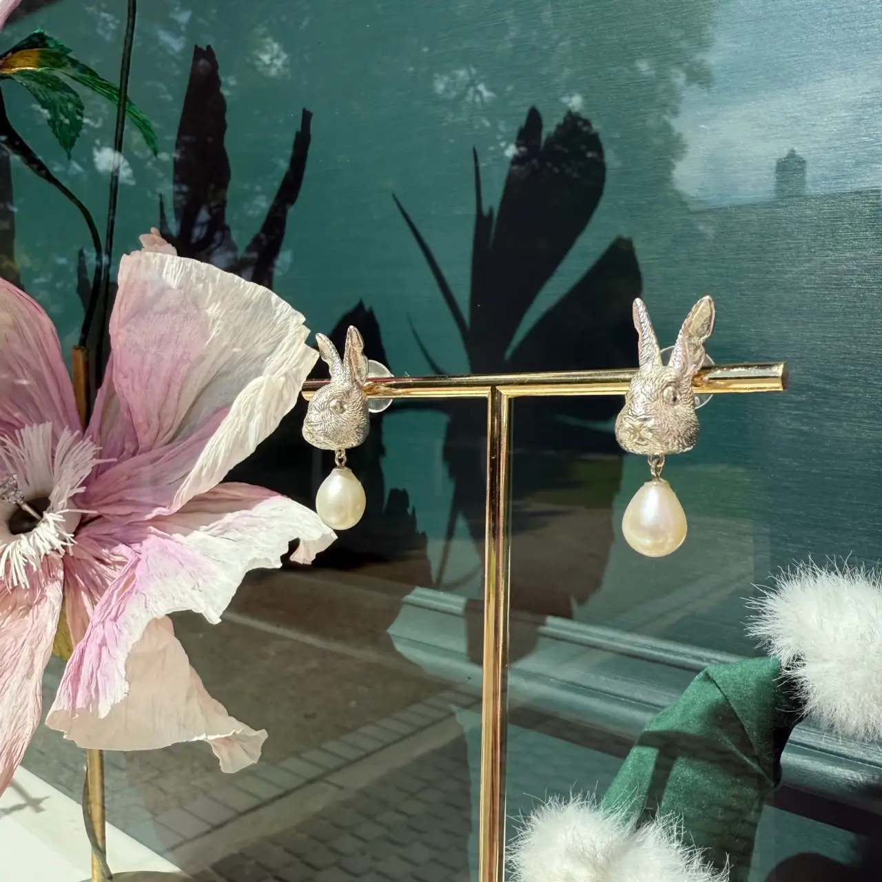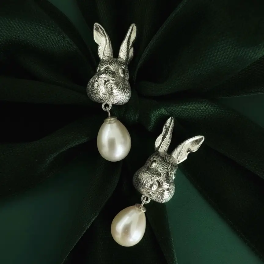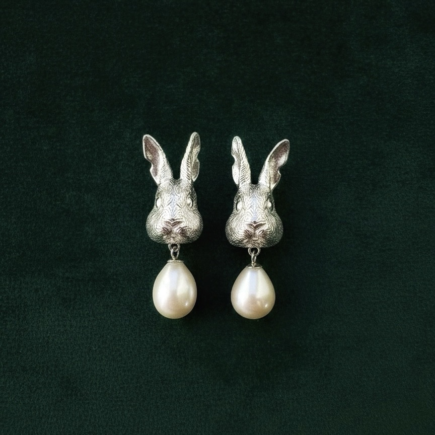 A magical embodiment of our beloved pet rabbit. Crafted from sterling silver and freshwater pearls.